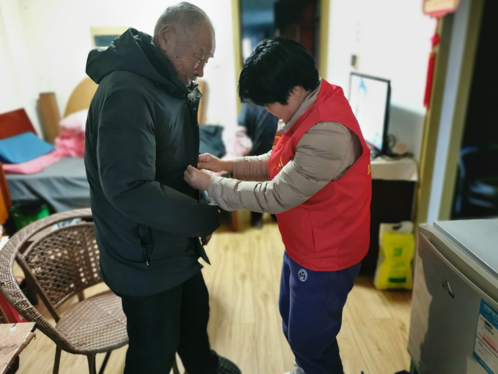 “阿姨,寒潮天来了,要多穿衣服啊,外出也要注意安全,有事随时打我们社区的电话。”上周还是天气晴朗,这周一瞬间最低气温达到了零下2度。天寒地冻,梅山成校教学点江梅社区的网格员们对辖区内的空巢和独居来人开展“幸福来敲门”行动,为老年人安度寒潮天气构筑了“温暖防线”。