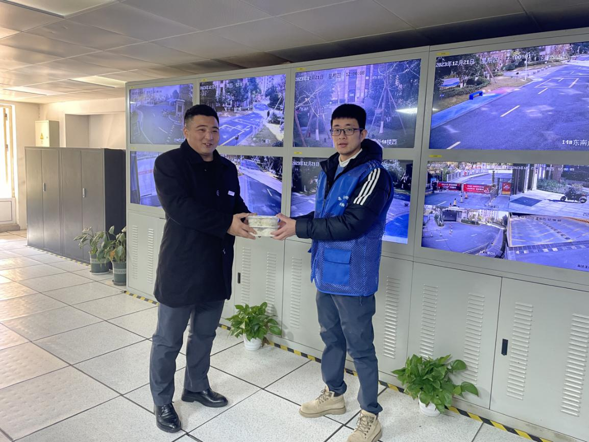 大家分工明确剁馅、和面、擀皮,热火朝天的干起来,还相互切磋包饺子的技巧,彼此比较着饺子的形状,现场气氛和谐,洋溢着“家”的味道。在大家的努力下,形态各异的饺子放了满满一大桌。随后社区工作人员将饺子打包,送到高龄老人、残疾人家里、门岗保安、垃圾分类志愿者以及物业工作人员,为他们送上冬至的关怀。