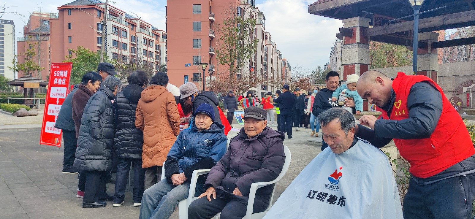 12月26日下午,梅山成校教学点江梅社区党群服务中心,新时代文明实践站组织辖区党员、志愿者来到绿岛新城中心公园,开展“心手相牵 微小服务在身边”志愿服务活动,将健康义诊、关爱理发、反诈宣传、暖心服务等10项便民服务以“集市”形式带到小区,一站式服务群众。