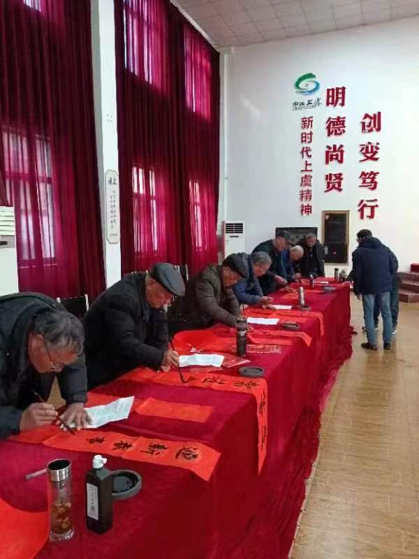 12月27日下午,余姚市临山成校组织老年书法班学员一行人赴上虞,与全国文明村小越镇倪梁村书法爱好者交流学习,同写春联。