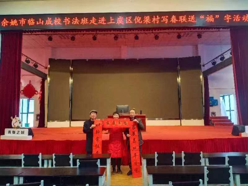 余姚市临山成校书法班走进上虞区倪梁村写春联送“福”字活动