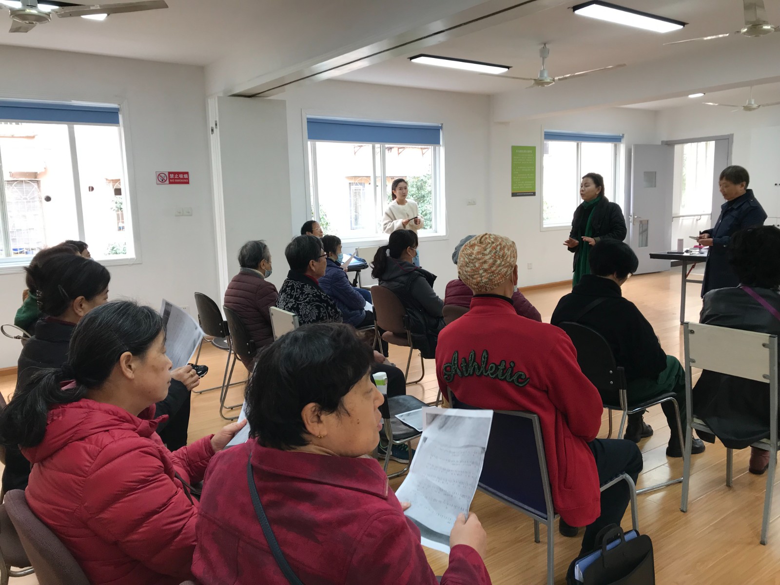 开班仪式上,王阿姨向学员们介绍了课程安排。在第一天的开班仪式中,学员们活泼热情地参与,努力学习的模样得到了王阿姨的称赞与鼓励。