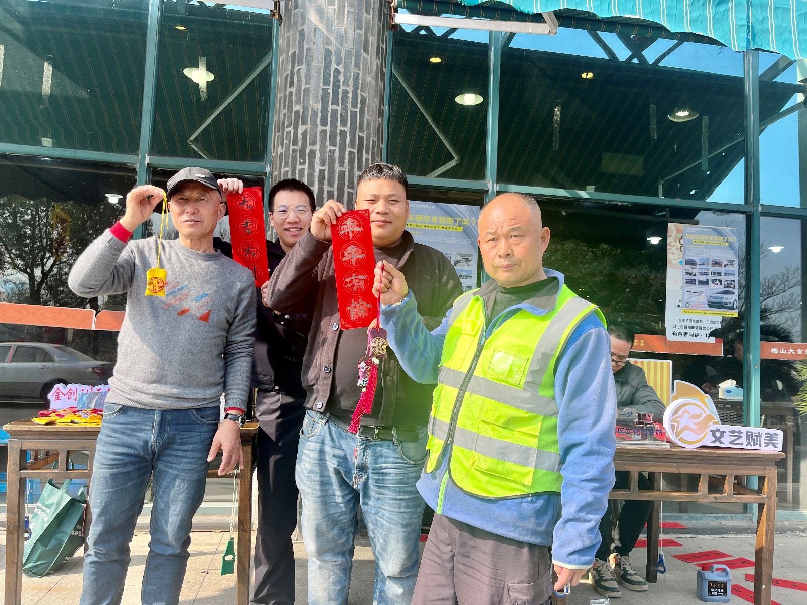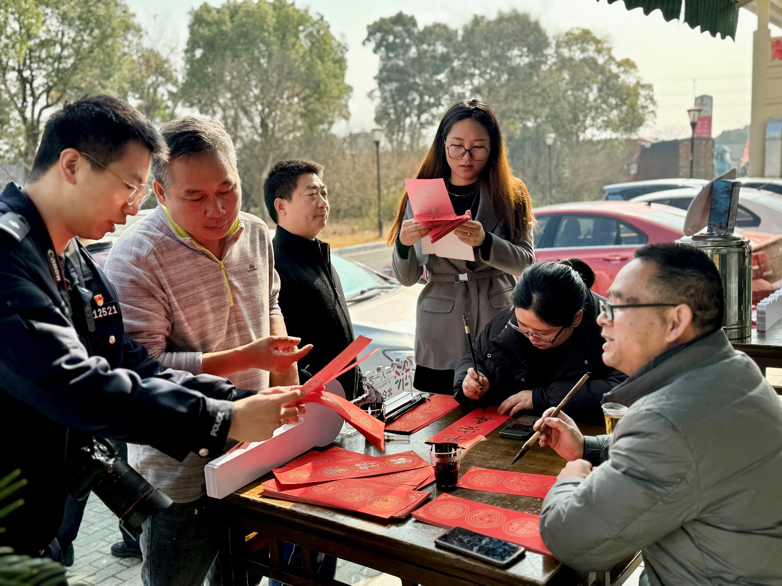 红红的对联,承载着满满祝福和美好向往。活动现场,墨香四溢,志愿者热火朝天地书写对联,把美好的新春祝福倾注笔端。“帮我写一路平安”“元旦快乐”“我要一幅‘大吉大利 诸事顺利’”......司机收到免费赠予的手写对联点赞道:“写的太好了,新年就要图个好意头!”