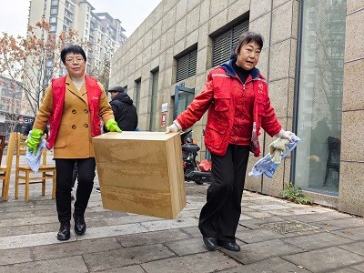 微网格员盛阿姨把活动室桌椅破损、活动室脏乱等问题上报给了网格员陈侃。经过商讨,为了给老年人提供一个良好的活动环境,让老年人能在整洁的活动室读书看报,聊天下棋。天悦社区网格员陈侃趁着新年,统筹资源,调用一批桌椅,搬进老年活动室;召集共建单位提供维修人员帮助维修破损桌椅;召集热心居民志愿者擦洗旧桌椅,打扫活动室。