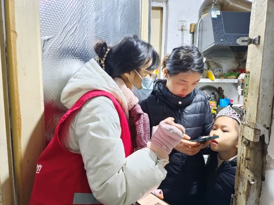 12月26日晚上,趁居民下班时间,网格员田学颖如约来到居民家中拜访。女孩妈妈十分担忧地说,“她还有1年就要上小学了,我们也发愁去哪里上学,如果实在不行的话,就只能送回老家去了。” 网格长鼓励她,可以通过积分入学,增加积分的形式帮助孩子就近上学。首先,田学颖向居民解释了什么是积分入学,这一政策主要是保障符合条件的流动人口子女依法接受九年制义务教育,对符合量化积分入学条件的流动人口子女,按照积分高低和实际居住地相对就近原则统筹安排。