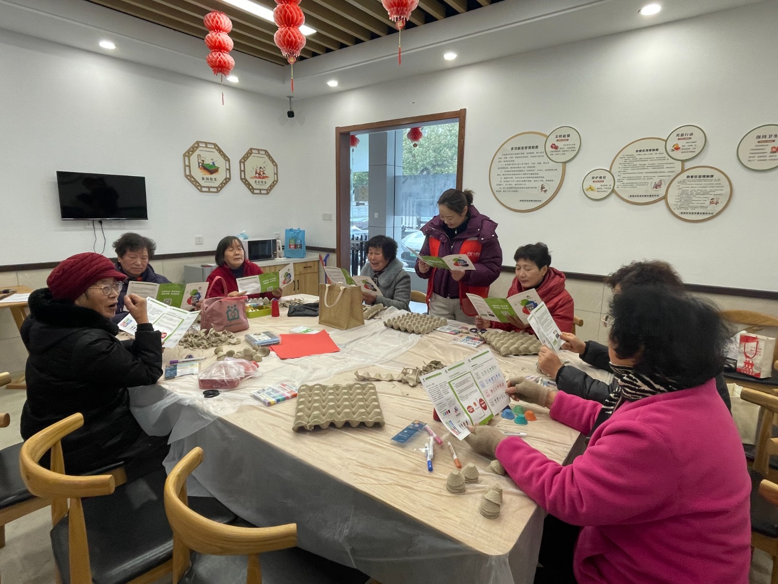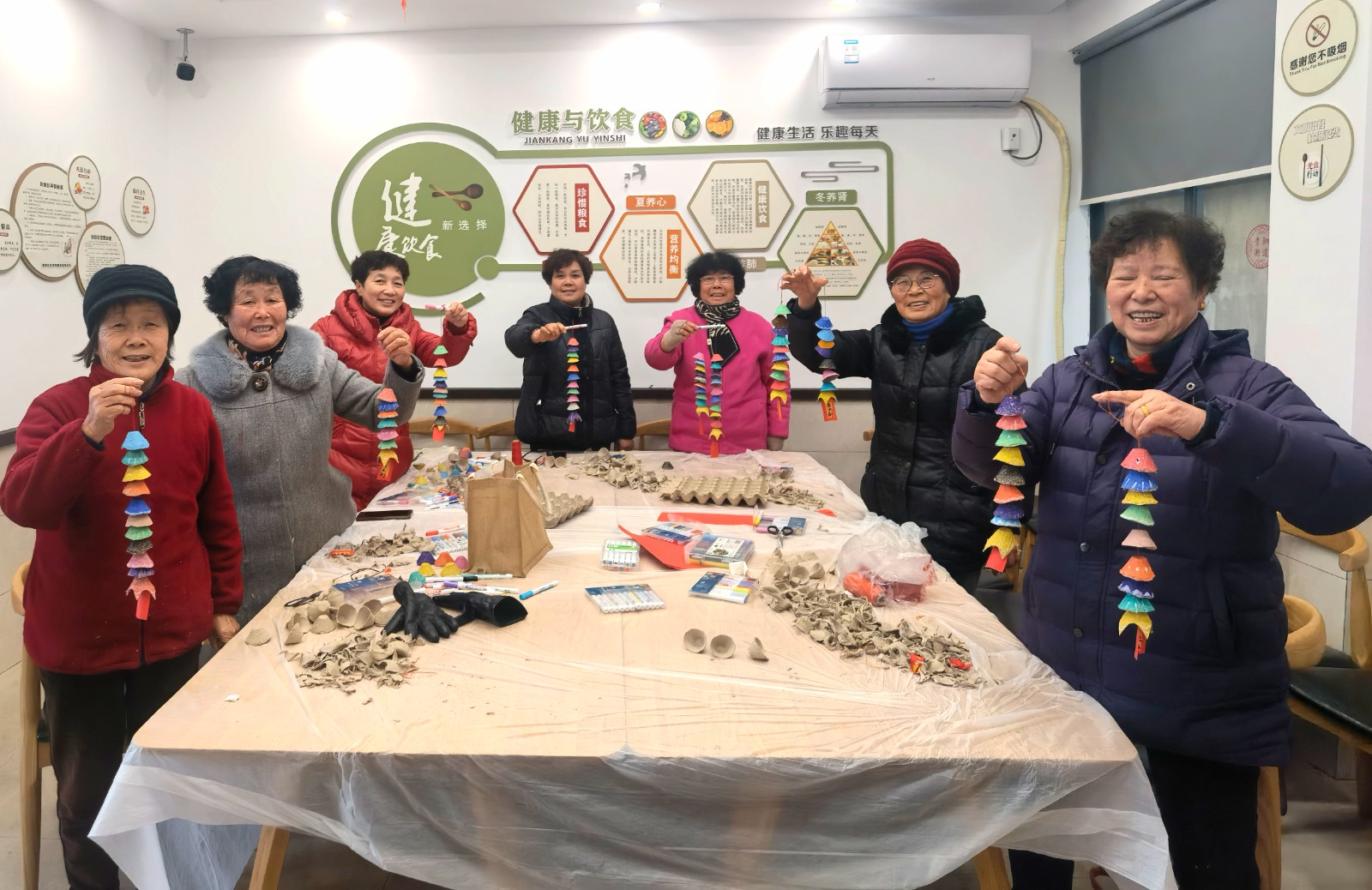 活动现场,社区工作人员首先通过提问互动的方式,和居民阿姨们交流生活中有哪些垃圾,如何将垃圾正确分类投放以及将垃圾“变废为宝”的意义与方法。阿姨们都纷纷列举在生活中遇到的各种妙点子:有的说可以将干净的旧衣服捐赠给边远地区有需要的人;有的说可以把空瓶子改造成花瓶;还有的说可以把吃剩的果皮做成肥料用来养花······接下来,为了让阿姨们进一步感受“变废为宝”的乐趣,社区工作人员带领大家一起将装鸡蛋的纸箱子按照形状挨个剪开,然后开始涂涂画画,再将它们串联起来,就变成了一串串独特的“风铃”。阿姨们看着自己亲手制作的“杰作”,一个个笑得都合不拢嘴。