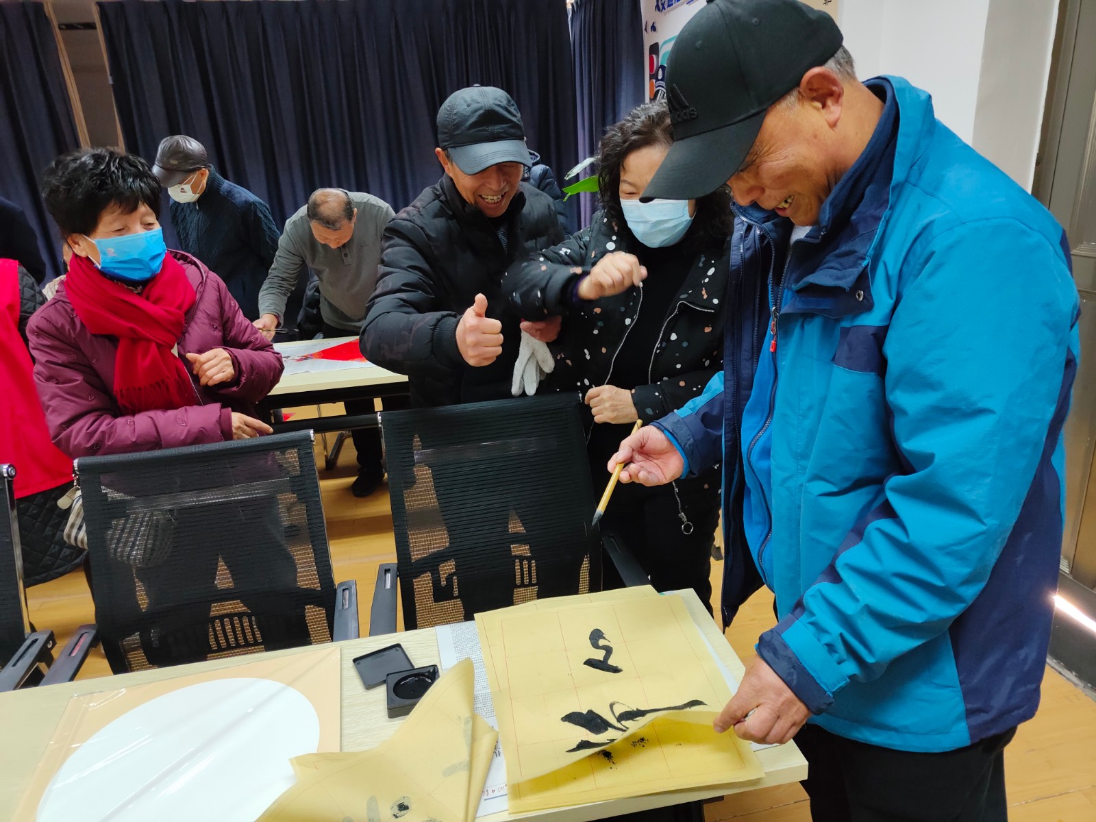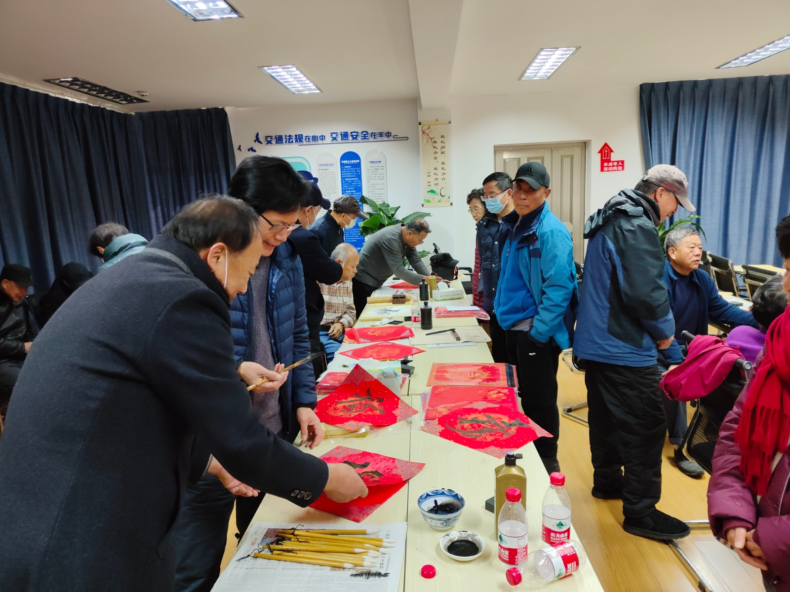 1月11日,在龙年来临,新春将近之际,兴庄路社区开展“泼墨书家风,丹青传廉韵”走近书法活动。活动现场,书法大家绘画国画,写下福字、新春祝语和家风家训,银辉党员们一边感叹书法的魅力和老师们深厚的书法功底,一边对书法抱有极大的热情,跃跃欲试,临摹练习。通过这次活动,各位居民近距离感受到了书法作为传统文化瑰宝的吸引力,通过书写家风家训传递道德正能量,同时支部挖掘出了不少书法人才,丰富了银色人才库。