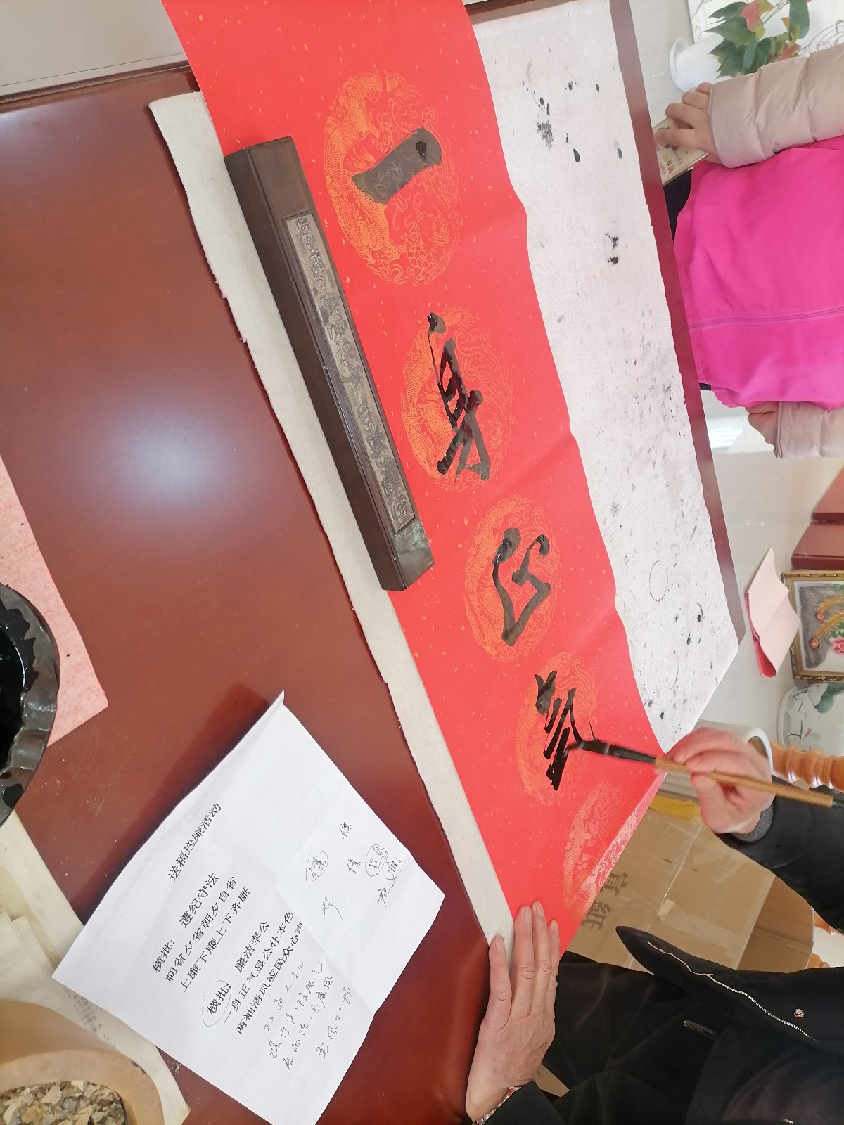 “我家里有几位党员,我要把这副对联贴在门上,希望这副春‘廉’能时刻提醒他们不忘初心,永葆廉洁。”党员家属乐阿姨拿着春联兴奋地说。1月12日上午,峰城社区党群服务中心联合街道书画协会的老师们和辖区居民在此开展写春联送春联迎新春活动。