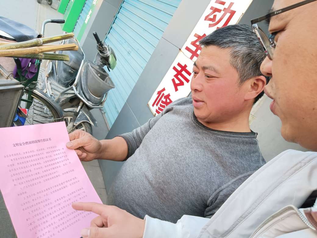 活动中,网格员向社区居民发放《文明安全燃放烟花爆竹倡议书》。让社区居民明确禁止燃放烟花爆竹的区域和特别规定的地点,提醒居民禁放区外安全燃放。为了进一步提高宣传效果,社区还在人流量集中区域悬挂宣传横幅。除了社区内的宣传活动,网格员还与辖区内超市、烟杂店签订了《禁止燃放烟花爆竹告知书》。