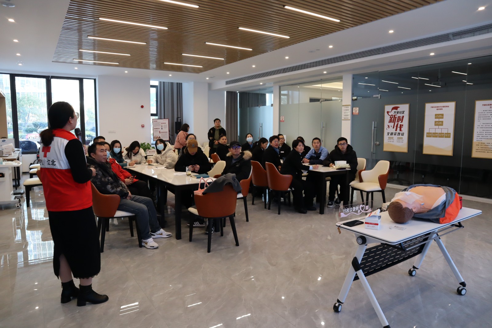 202414日,江北区红十字会联合甬江街道红十字救护站在万象社区开展救护培训班,为社区网格员及物业的工作人员进行CPR+AED培训。