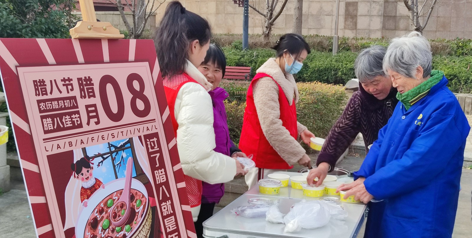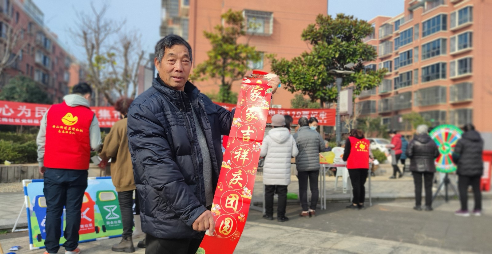 “福满乾坤龙腾云 春满人间瑞气新”,80多岁的陈老伯拿着对联,喝着腊八粥,笑着说;“社区在这特殊的节日能想到我们老年居民,不仅给我们送春联送福,还给我们送腊八粥,我打心眼儿感到幸福。”