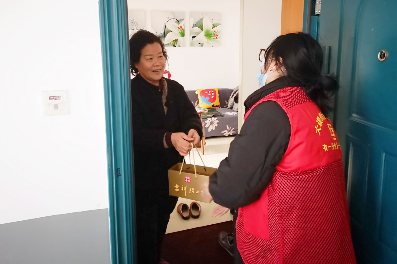 农历十二月初八俗称“腊八”,是春节的序幕。花生、红豆、花芸豆、莲子、薏米仁、核桃仁、桂圆干……腊八粥作为这个节日的传统食品,不仅寓意着吉祥、团圆和丰收,也富含营养,有益健康。一袋袋金色的腊八粥礼盒,在冬日阳光的反射下格外耀眼,网格员们拎着礼盒,在各个小区之间奔波还有这份惊喜啊,你们真是太客气了。”收到腊八粥,家住书香晓苑的张阿姨十分开心答谢道。虽然是一份小小的腊八粥,但带给大家的却是满满的温情。