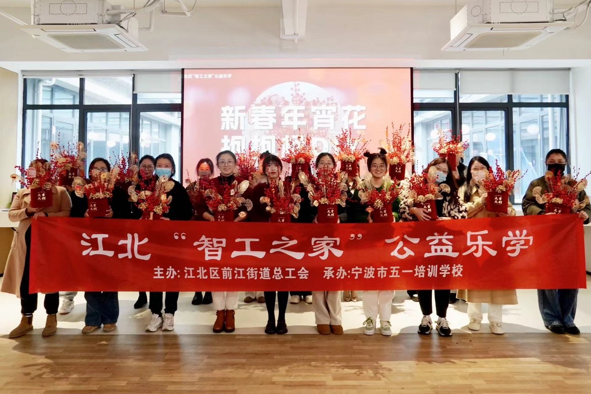 前江街道“智工之家”diy新年年宵花抱抱桶