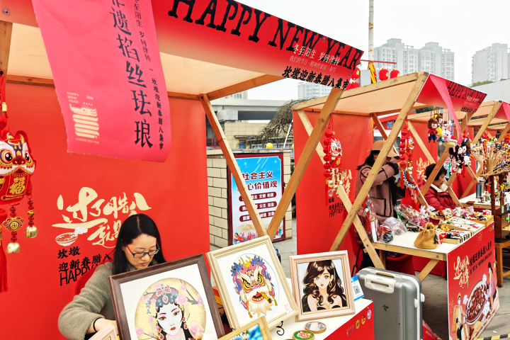 一份份香甜可口的腊八粥,带去一份份暖融融的问候。腊八粥摊位前,市民排队从志愿者手中领取腊八粥,暖心暖胃。乡贤书法家现场写春联、写福字,免费送给村民,获得村民一致好评。手工冻米糖摊位前,穿着传统喜庆衣服的小朋友,开开心心地品尝刚出炉的冻米糖,甜甜的、酥酥的……公益集市上,近10家摊位依次排开,大家感受幸福的节日氛围。