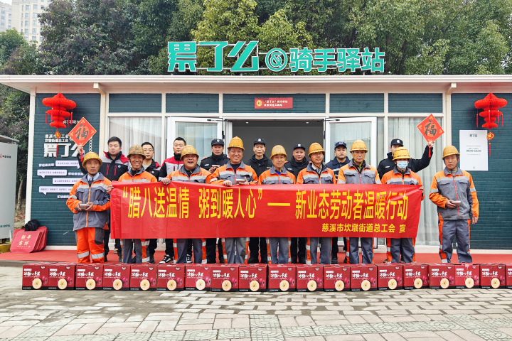 尝一口软糯香甜的腊八粥满足味蕾,领一个“福”字回家过个幸福安康年……1月18日下午,慈溪坎墩街道三群村文化公园内人头攒动,坎墩街道新时代文明实践所联合街道总工会、团工委举办的活动“腊八送温情 粥到暖人心——新业态劳动者温暖行动”吸引不少市民参与。