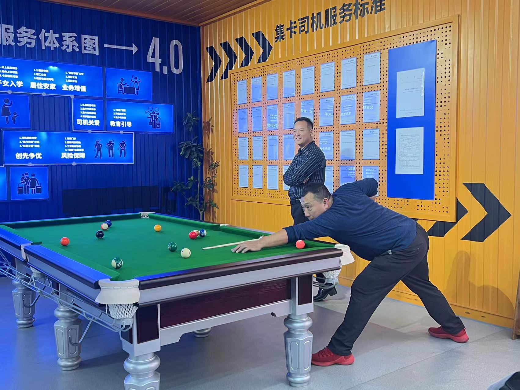 “集卡司机关爱课堂”举办趣味台球赛,不但丰富了司机们的业余生活,更促进集卡司机的身心健康发展,营造了积极向上的和谐氛围。