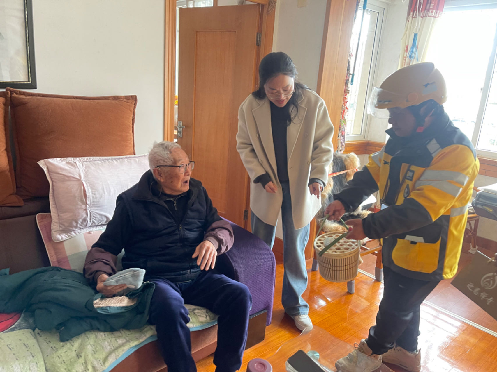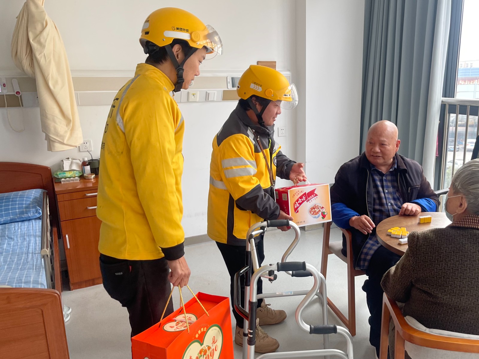 外卖小哥吴永坡笑着说:“这是我送过的最特别的‘外卖’。每次看到这些老人们就会想到自己老家的父母,希望有更多的人加入到志愿者队伍中来,远在老家的父母也能获得这样的温暖。”