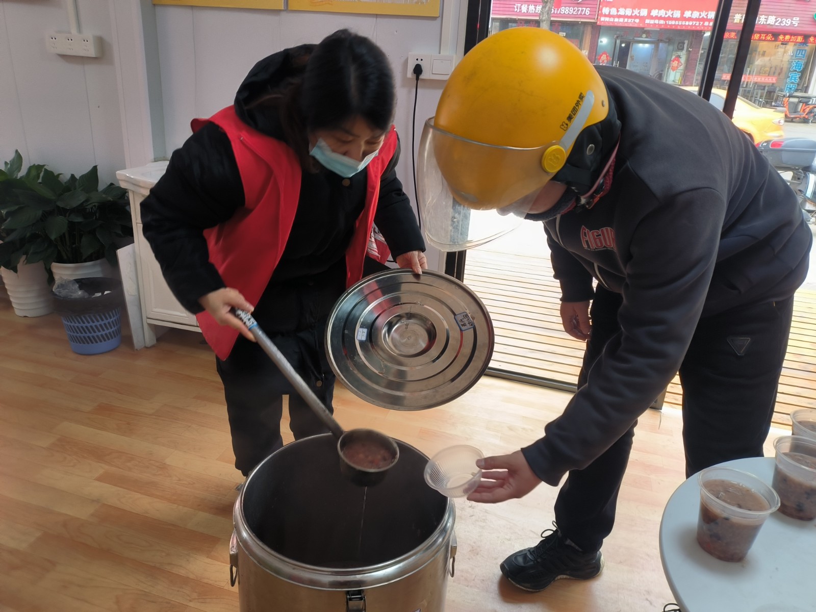 活动现场,微网格长和志愿者们将腊八粥分装在一个个一次性碗里,招呼着路上奔波的户外劳动者和办公楼内赶着上班的企业职工过来品尝腊八粥。“大早上喝上这么一碗热气腾腾的腊八粥,一下子就感受到了节日的氛围。”美团外卖小哥王鹏军感动地说道,“被暖到了,干活更加有动力了。感谢社区工会把温暖和关怀传递给我们户外工作者,为我们工会‘娘家人’点赞!”