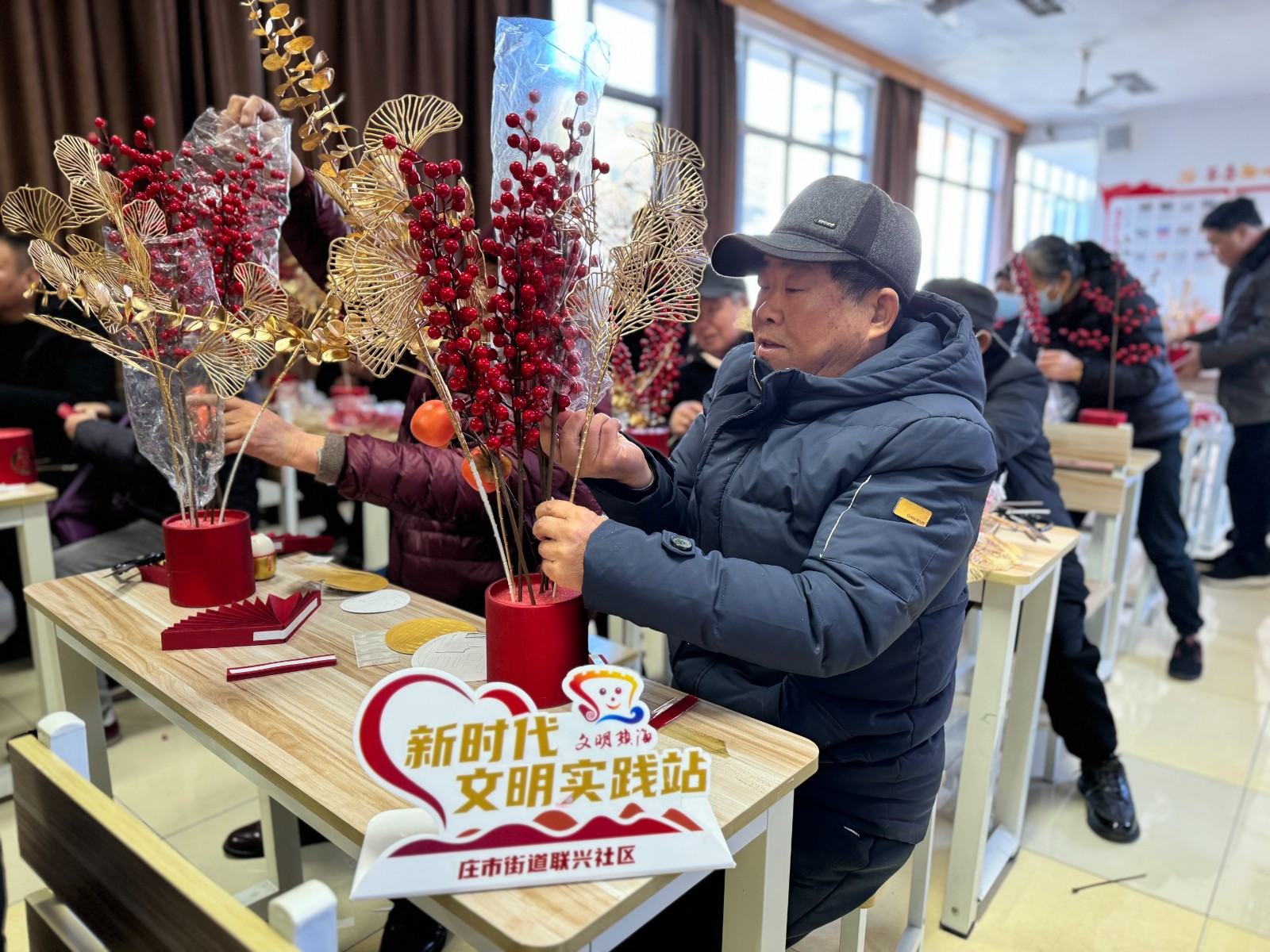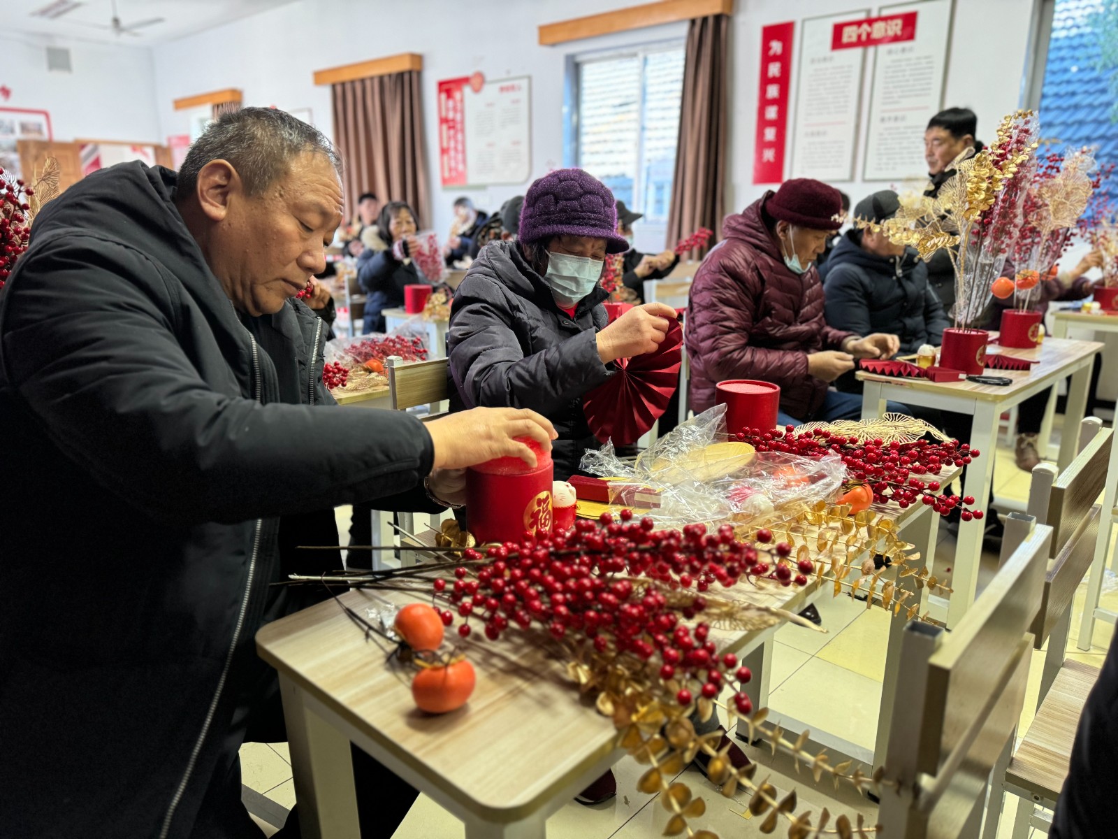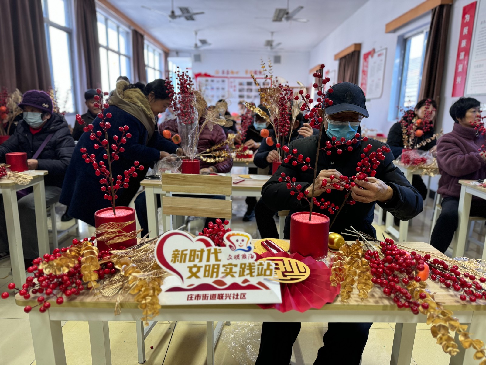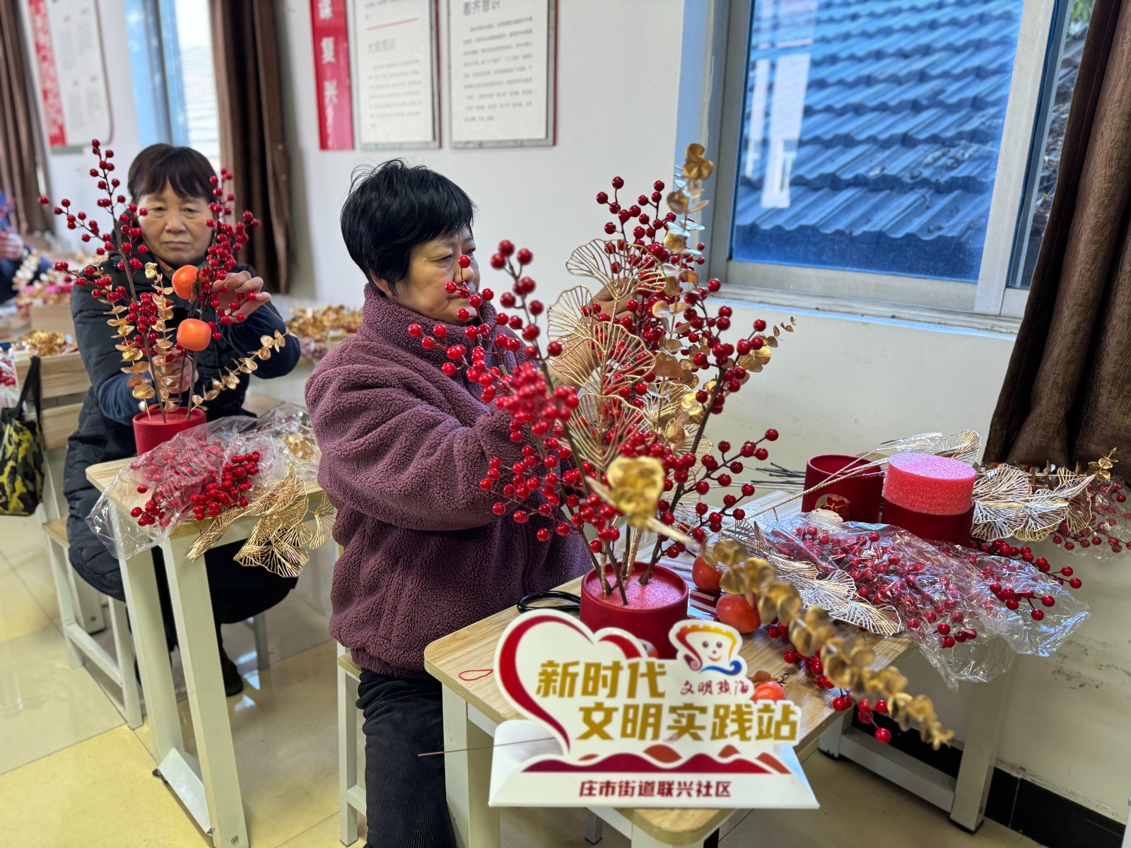 为喜迎新春佳节,营造喜庆祥和的节日氛围,同时,为丰富辖区居民精神文化生活,提高其对美的感知和理解。联兴社区新时代文明实践站于2024年1月24日下午开展“新岁共启,送暖敬老”主题活动,邀请网格内优秀党员、巾帼志愿者、企退人员共同制作年宵花福桶。