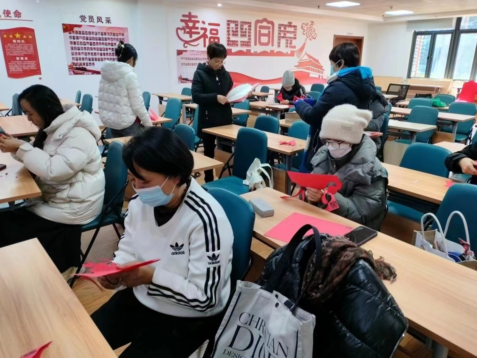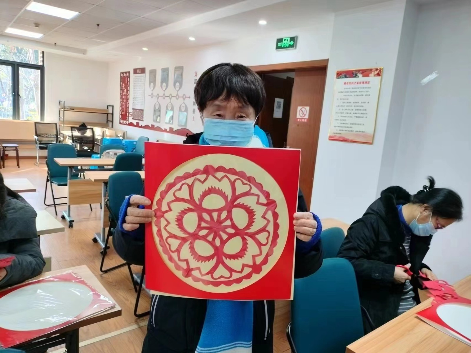 1月24日,天合社区联合天合社区居家养老服务站开展迎新春非遗剪纸活动,迎接新春佳节的到来,营造新年氛围。工作人员首先给参加的社区居民们简单介绍了中华传统民俗文化和剪纸的基本技巧,随后将剪刀以及剪纸分发给大家,让大家自行开始剪纸,此次分发的剪纸类型有“窗花”、“福字”以及“龙”,窗花比较简单,阿姨们纷纷拿“福字”和“龙”这种比较难的类型进行剪纸。现场每个人都仔细地描画,一剪剪,不一会儿,一张张活灵活现的作品就诞生了。一幅幅喜庆的剪纸作品,饱含着新春的祝福,活动现场充满了欢乐祥和的新年气息,不仅让居民体验到了剪纸的乐趣,同时也借助剪纸的喜庆,满足了居民群众的精神文化需求。
