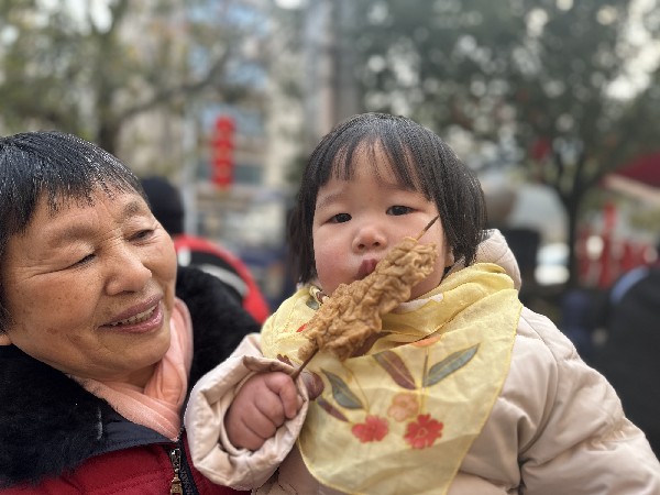 活动一开始,社区工作者和志愿者们就将准备好的制作美食的材料搬到活动现场,纷纷开始制作美食。随着阵阵飘香的传来,冰糖葫芦、烤菜年糕、豆腐串等波老底子的传统美食摊位火热开张,居民们陆续到来,各“摊位”人头攒动,热闹非凡。工作人员一边给居民们讲解春节的习俗以及饮食习惯等,一边为居民送上热腾腾的美食,前来参加活动的居民们一边品尝美食,一边分享自己品尝美食的心情,现场欢声笑语、其乐融融。刘阿姨边吃边夸赞:老师傅的手艺真的是很棒!很久没有吃到这个小时候的味道了,好怀念!我太喜欢社区组织的活动了。