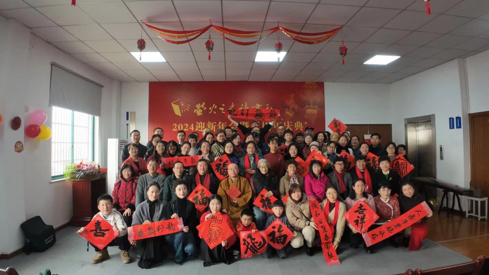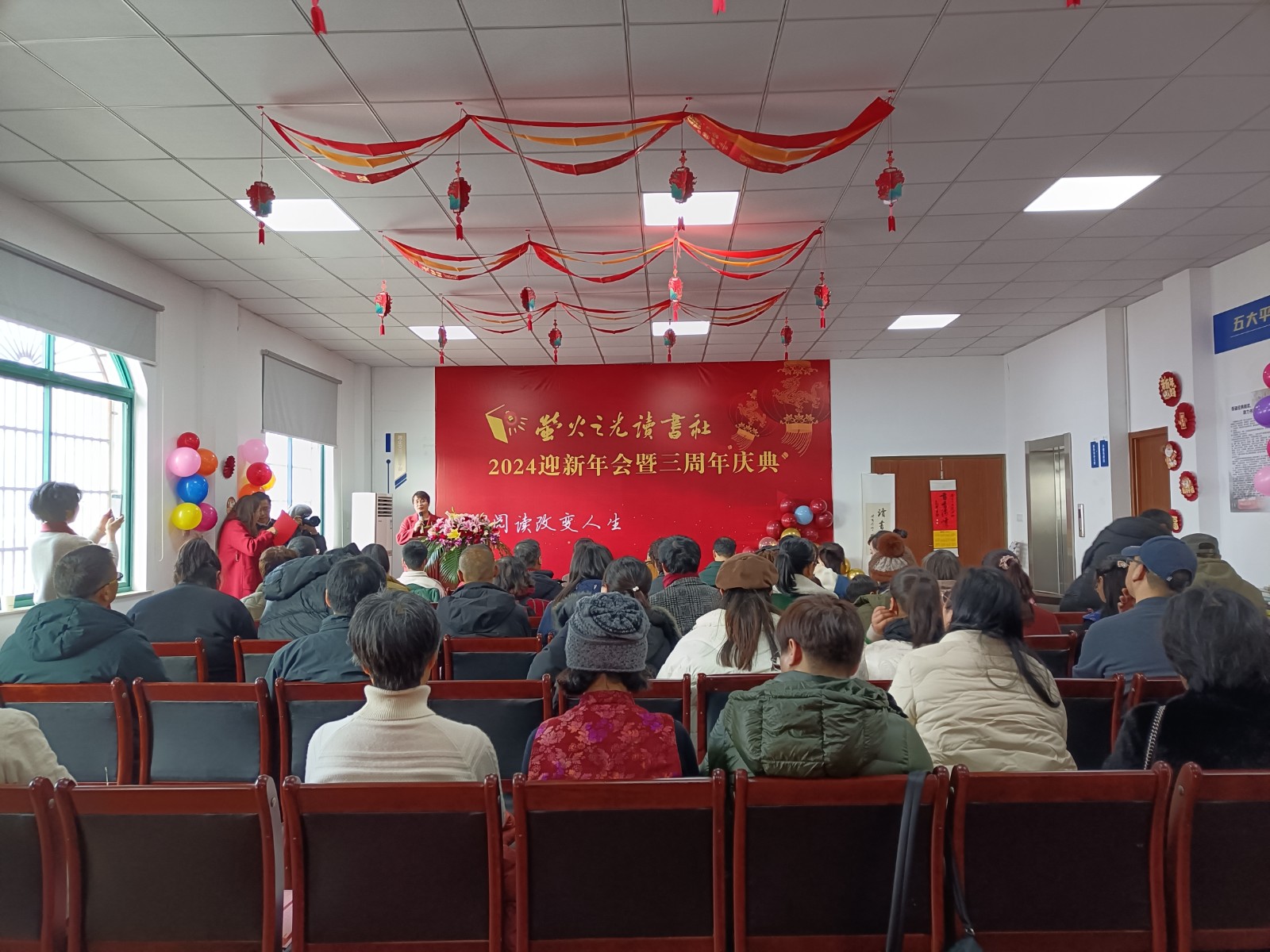 127龙年新春来临之际,九龙湖镇成人学校携手萤火之光读书社、紧固件协会、九龙湖商会在紧固件综合服务楼行新年联欢活动书社成员企业代表和行业精英等六十余位读书爱好者参与活动