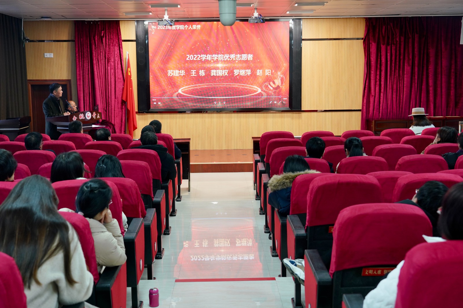 过去一年,学院在各项工作中又创佳绩,共获市级以上荣誉37项。大会以视频形式展示了2023年度集体与个人荣誉,并对2022学年校招生先进个人、校优秀教师、校优秀班主任、校优秀志愿者、2023年学习强国“学习先进个人”等荣誉进行了表彰。