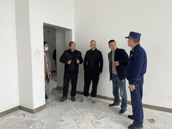 2月2日,大碶街道人大主任程知信携人大副主任乐松毅及街道人大代表一行10几个人,检查学校迁建工程的安全生产情况,王财定作陪同并作工程进度和各功能室使用规划。。