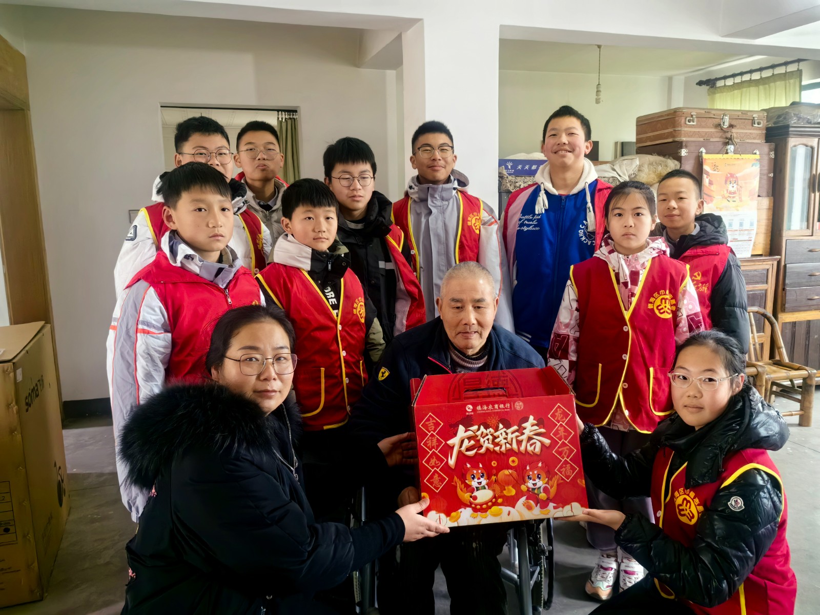 除尘布新辞旧岁,焕然一新跃新年。新春来临之际,为弘扬传统文化,践行中华传统美德。2月5日九龙湖镇河头村组织辖区青少年开展“纳福送春联,除尘迎新年”活动,志愿者们带着慰问品,来到孤寡、残疾、空巢的高龄家中,详细询问低老人们的生活情况和健康状况,细心叮嘱他们多注意身体,鼓励他们保持乐观向上的心态,并不时分享着自己在学校的趣事儿。志愿者们一边同老人唠嗑,一边手中忙活起来,他们手持抹布、扫帚,有的在擦拭门窗桌椅、有的清扫居室,孩子们表示:“把屋子打扫得干干净净,以新的气象辞旧迎新”。打扫干净后,孩子们又贴上福字、春联,浓浓的年味就有了。