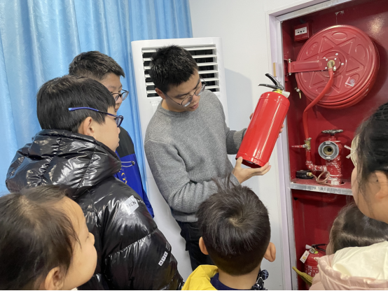 同时网格员还温馨提示青少年们,临近新年大家要禁止燃放烟花爆竹,提高自身的防火防灾意识。最后,通过现场展示消防器材,网格员亲自教小朋友灭火器的使用方法,让孩子们切实感受到消防安全就在我们身边。