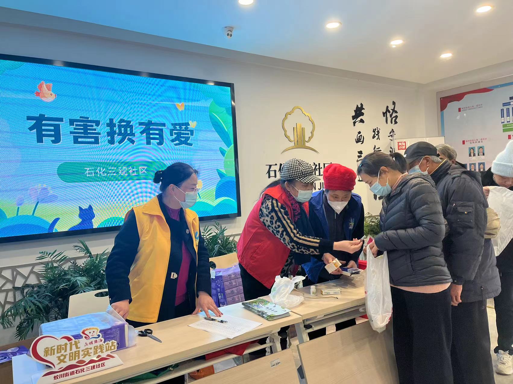 在石化三建社区,“有害换有爱”的主题日已深入居民们的心中,也唤醒了居民们对垃圾分类的意识与参与度,每月一次的开展,已经在石化三建社区形成了一种良好的垃圾分类风气,志愿者们也表示:”能让居民们提高垃圾分类的意识,并能通过有害垃圾换到日常生活必需品为居民们也带来了快乐和满足,一切都是值得的。”希望每个月的垃圾分类--有害换有爱的活动都能吸引居民们的目光,让有害垃圾找到正确归属。