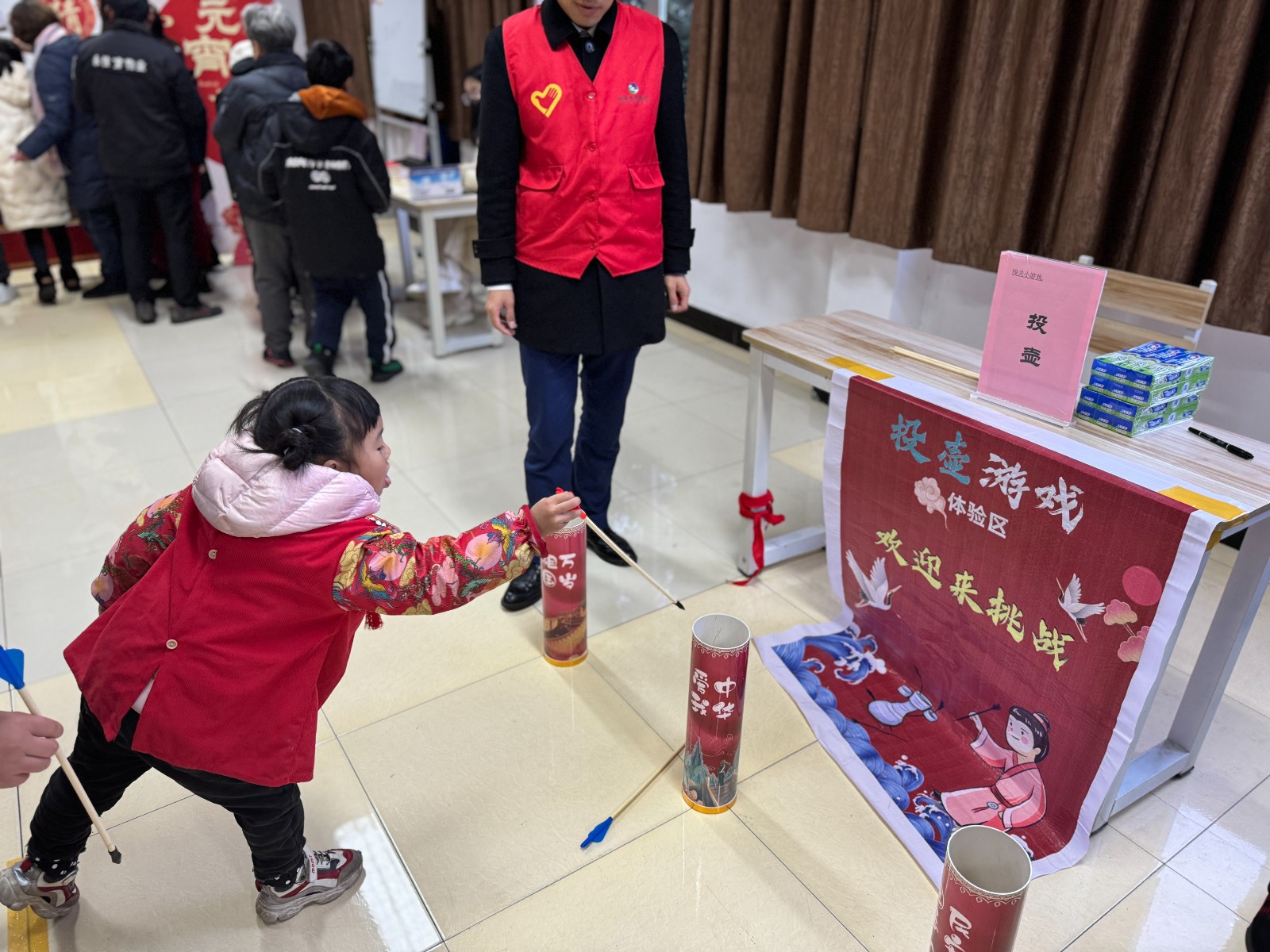 此次游园会包含元宵猜灯谜、好运龙龙套圈圈、欢喜夹“元宵”、沙包丢丢乐、趣味投壶等环节,居民需要根据游戏规则进行闯关,只有通过所有关卡、集齐所有印章,才可获得小礼品。现场欢声笑语、其乐融融。其中,猜灯谜融合知识性、趣味性于一体,并结合法治宣传等将反诈小知识作为谜面,让居民在游玩过程中提升反诈技能及相关法律知识。此外,现场还邀请了杨律师为大家宣传婚姻家庭、劳务用工、法律援助等与群众生活密切相关的法律法规。
