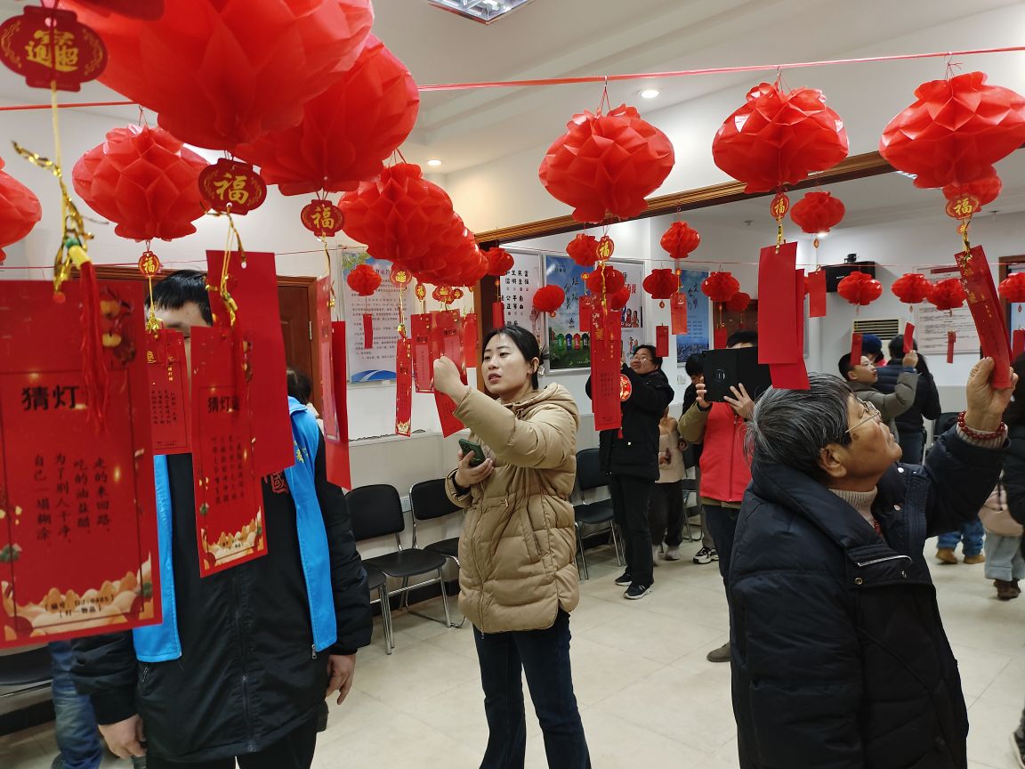 工作人员精心准备了200余条灯谜和小礼物,谜面丰富多彩,内容新颖,集知识性、趣味性、观赏性为一体。大家争先恐后踊跃猜谜,你一言我一语地互相讨论。现场人头攒动、热闹非凡,洋溢着欢乐、祥和、喜庆的气氛。