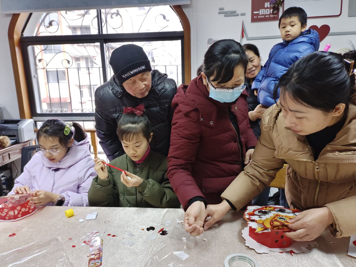 工作人员将准备好的“龙”型灯笼手工材料发放给居民们,并详细讲解了制作步骤及方法。大家迫不及待地开始制作起来,参照制作步骤和工作人员的耐心指导,认真地一步步完成了灯笼的制作,大家有说有笑,场面十分温馨。