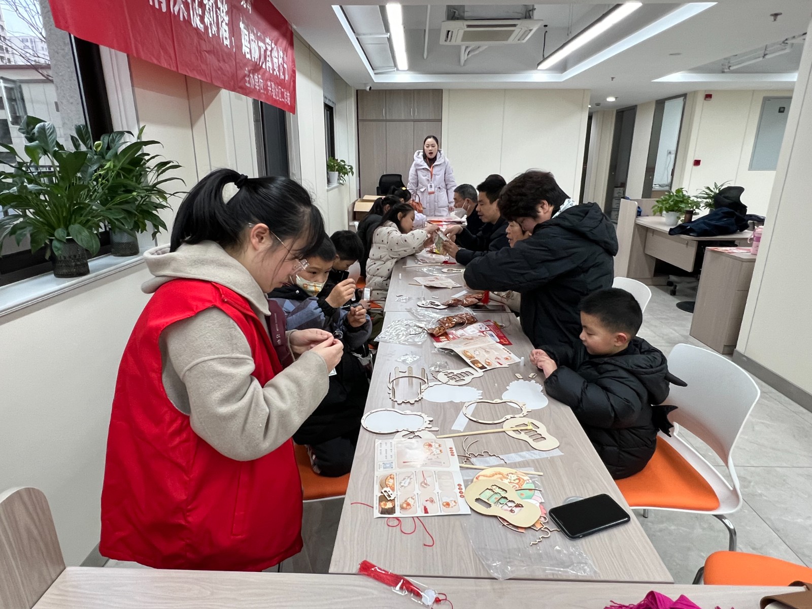 活动现场,志愿者首先为小朋友们介绍了元宵节的由来传说与民俗风情,接下来孩子们在家长的陪同下积极动手,发动奇思妙想,取材、组合、粘贴,还时不时讨论龙灯的款式和节日祝福语等。在欢声笑语中,一个个精致的小龙灯新鲜出炉,孩子们拿着自己的作品兴奋地展示,纷纷发表自己的制作心得。