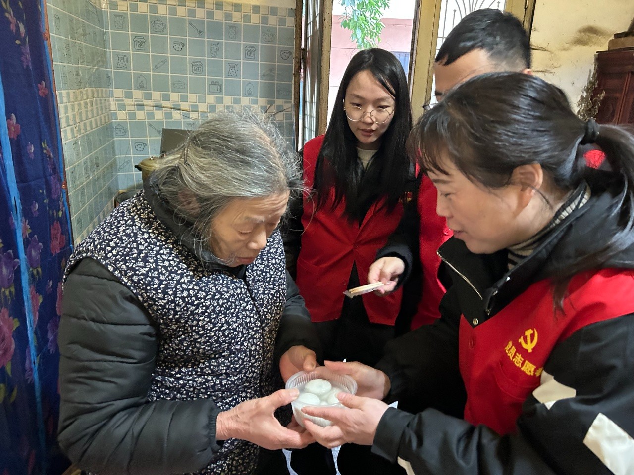 丰潭村文化礼堂组织开展“元宵猜灯谜”主题活动,并组织志愿者给村中的老人送去元宵,让他们感受到节日的温暖。