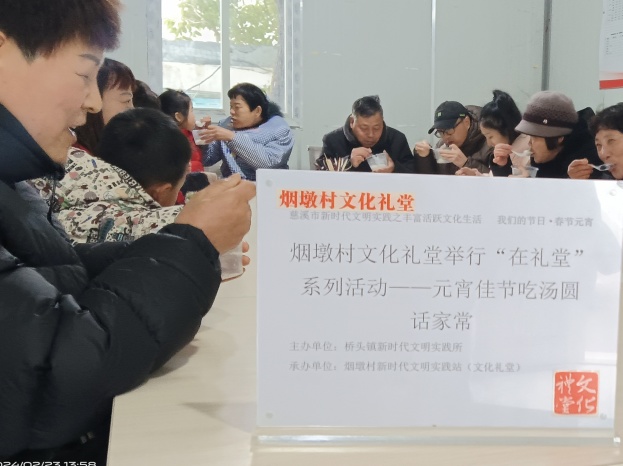烟墩村文化礼堂组织开展“元宵佳节吃元宵话家常”主题活动,节日的喜悦在大家的热情参与中传递开来。