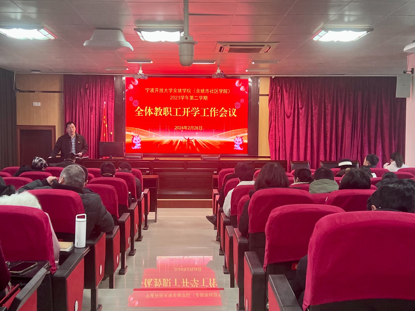 为确保新学期开学工作规范有序进行,促进各项工作再上新台阶,2月26日上午,余姚开大(社区学院)2023学年第二学期开学工作会议在校报告厅举行。会议由学院副书记、副院长王振南主持,全体教职工参加会议。