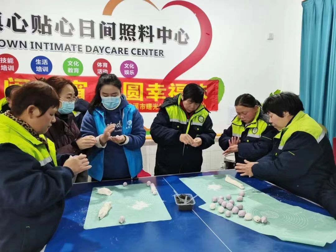 农历正月十五元宵节作为我国传统节日,寄托着人们的美好愿望,为更好的弘扬传统文化,丰富学员们的精神文化生活,营造欢乐、祥和的节日氛围。2月23日,横河镇心贴心日间照料中心与社区服务中心开展“趣味猜灯谜,欢乐度元宵”的元宵活动。来自社区服务中心的志愿者们指导学员们制作汤圆。吃汤圆是元宵节中必不可少的传统习俗,它寓意着家人团团圆圆。活动现场,中心的小伙们一边聊着家常,一边包汤圆。黑芝麻馅儿、豆沙馅儿……一个个白白胖胖、大大小小的汤圆在大家手中成型。“虽然卖相不是很好看,但大家一起过元宵节就是这个热闹劲。