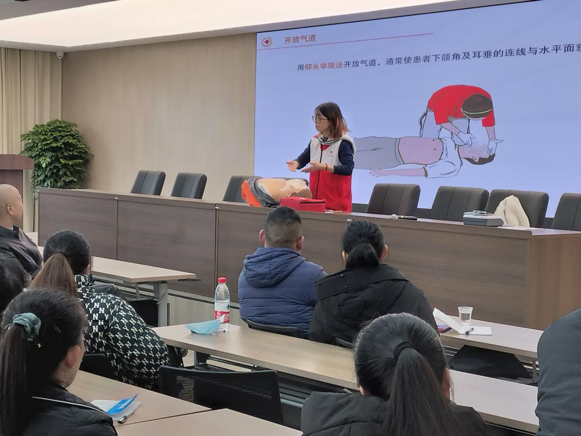 本次培训分为理论讲授和实操培训两个环节。现场,应急救护师通过PPT讲解,为同学们普及急救知识,特别强调心跳骤停后的4分钟,是救命的关键时刻,学会“黄金四分钟”内利用AED对患者进行除颤和心肺复苏(CPR),就可能给一条生命带来希望。同时,列举了许多身边的急救案例,把一些急救知识讲的深入浅出,浅显易懂。在现场实操环节,培训中学员们积极与培训师展开互动,并表示此次培训非常实用,学习了急救知识之后,学员们今后遇到此类突发情况也能够进行应急处理。