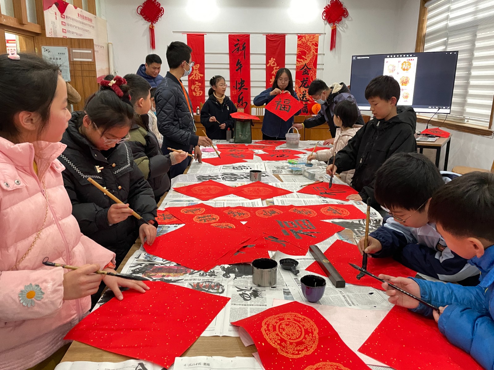 活动开始前,社区网格员向到来的孩子们介绍福字的由来与演变,“福字是中国最古老、最吉祥、最受欢迎的文字之一,在新春佳节等传统节日,必须贴挂福字,以寄托对新年的美好祝愿”,网格员们一边向大家描述,一边将“福”字从甲骨文到隶书之间的演变播放给孩子们看。