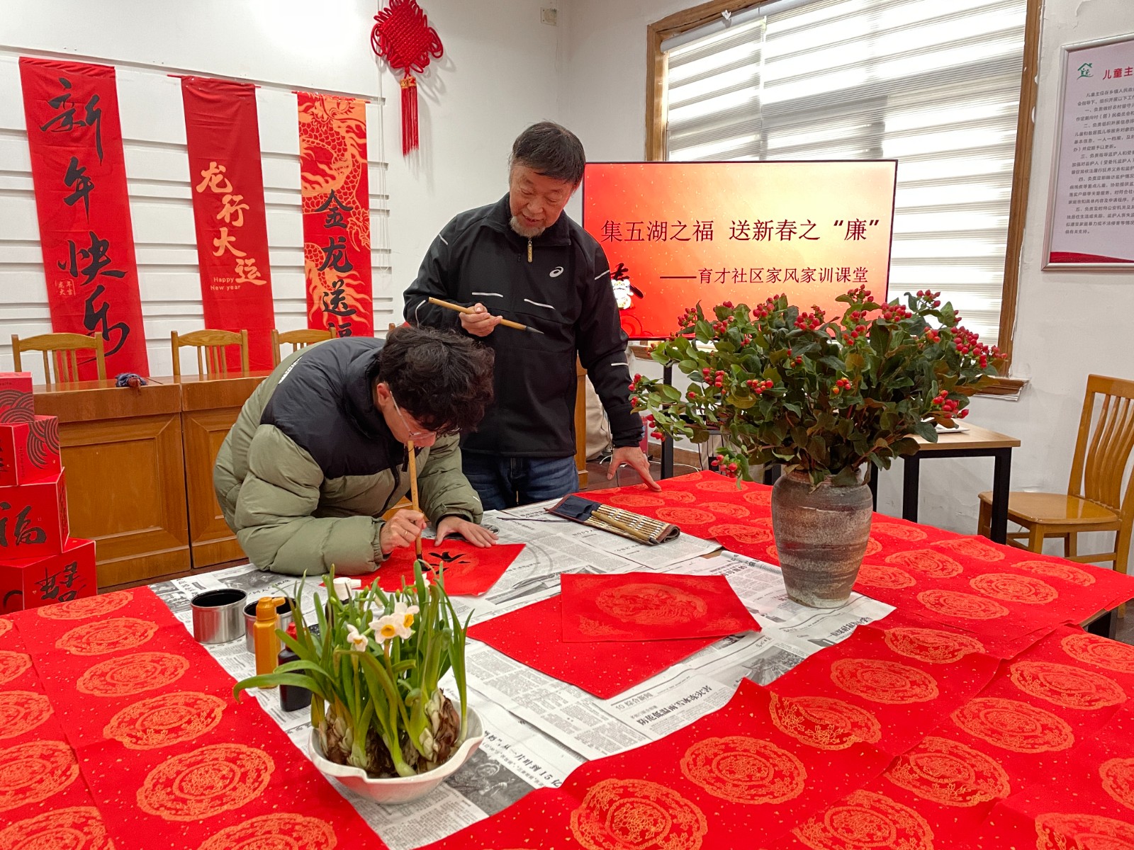 2月4日是农历立春,也是宁波中小学生放假的第二天,育才社区举行了“集五湖之福 送新春之‘廉’”家风家训活动。