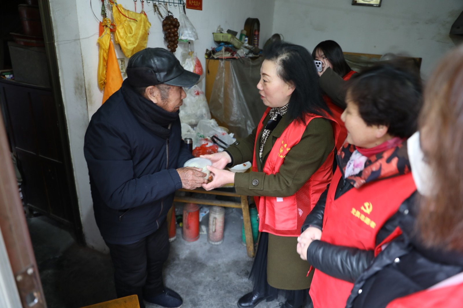 彭桥村老年学堂工作人员、彭桥村志愿者和柔力球队员们在上午一起做松花团、包包子,下村慰问低保户、困难残疾人、困难老人,为他们送上祝福,让他们吃上热乎的松花团子。
