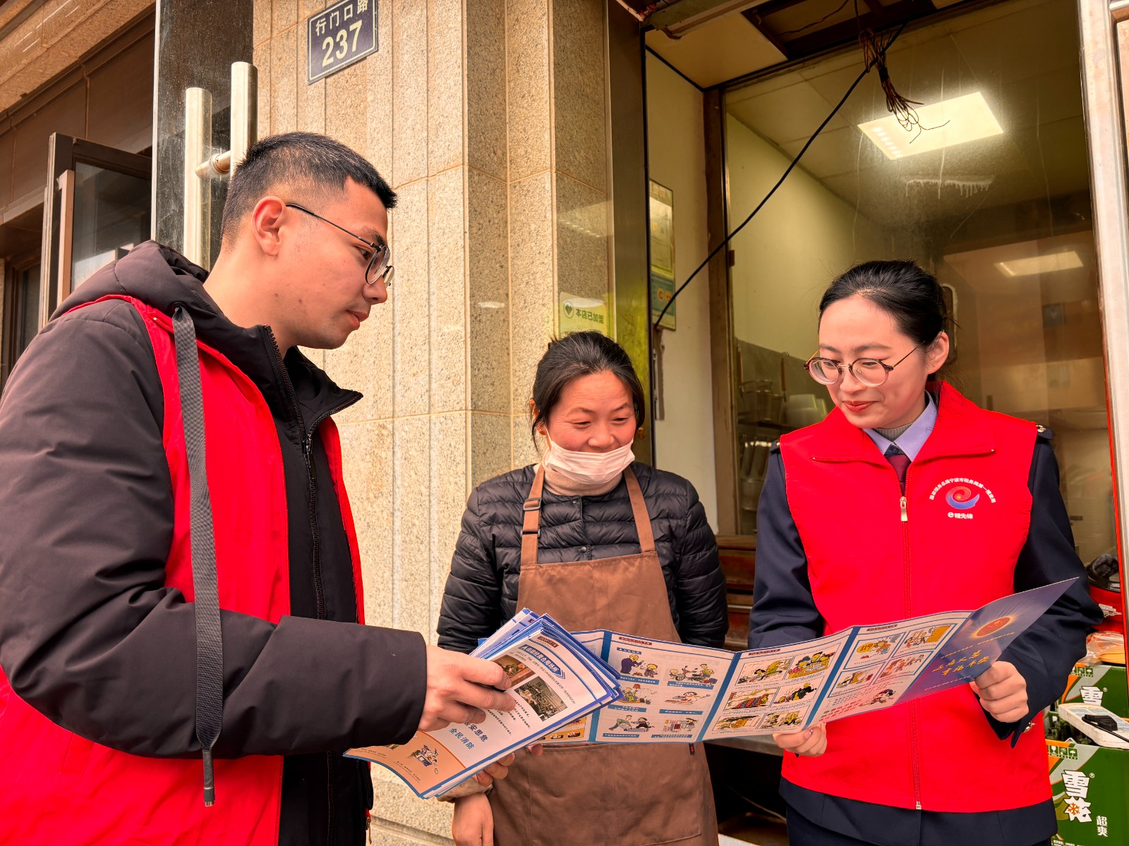 江北区甬江街道万象社区联合第一稽查局支队开展“传承雷锋精神 保障消防安全”志愿服务活动。“E稽先锋”党员志愿者们和万象社区网格员们深入沿街商铺、居民家中发放《远离火患,幸福平安》消防知识宣传手册,协助签订了《居民消防安全承诺书》,解答有关消防安全的疑难问题,让消防意识深入人心。