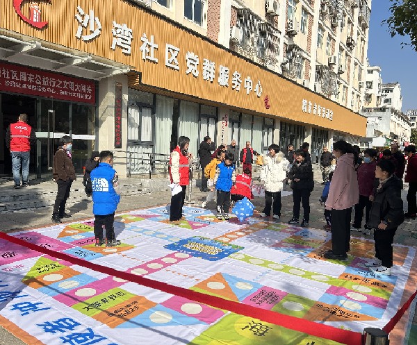 “再前进一格,我马上要成为文明使者啦!”一幅巨大的飞行棋在沙湾社区有礼广场上展开,只见在棋盘上清晰地写着:“参加新时代文明实践活动前进3步”“随地吐痰后退2步”“遛狗不牵绳后退4步”……310日上午,沙湾社区“文明沙湾 有礼有爱”周末公益集市的现场热闹非凡,来自四个小区的居民代表抛着骰子,并根据骰子显示的数字前进,争做文明使者。