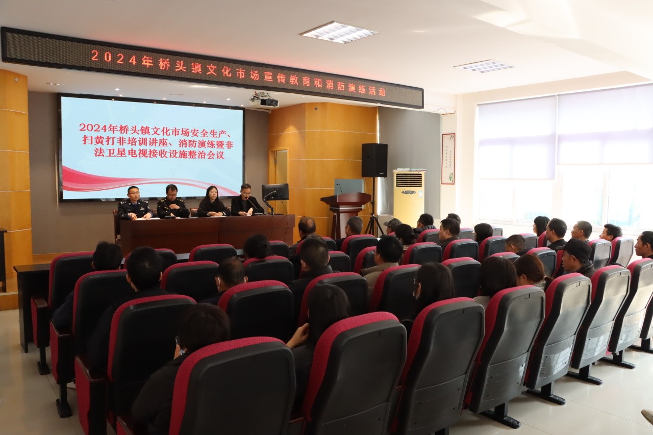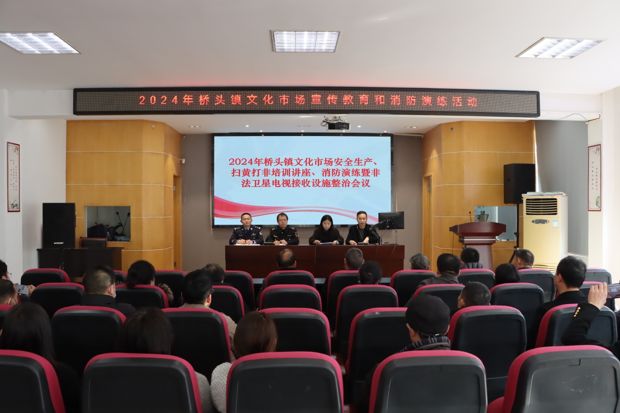 3月7日下午,在桥头成校桥头镇召开2024年度文化市场、印刷发行行业安全生产与“扫黄打非”宣传教育和消防演练活动暨非法卫星电视接收设施整治会议。