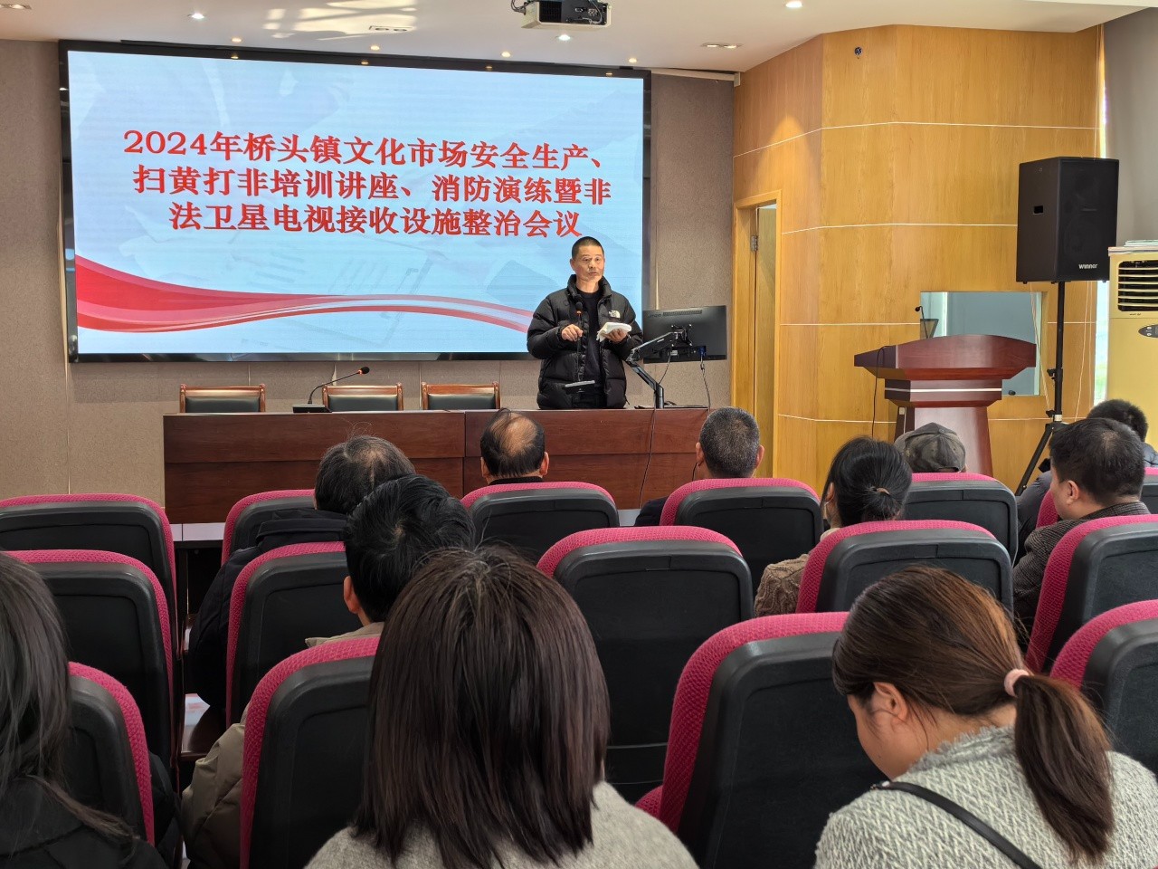 会上,桥头派出所、市场监管所、宣传文化线依次就禁毒、“扫黄打非”、知识产权、安全生产、非法卫星电视接收设施整治等工作进行宣教培训。会议强调了守牢安全生产底线的重要性和必要性,要求各经营单位和场所警钟长鸣,对标进行安全隐患自查自纠和整改提升,并抓紧时间组织实施对本单位从业人员的安全生产和消防安全培训,确保文化市场平安祥和。