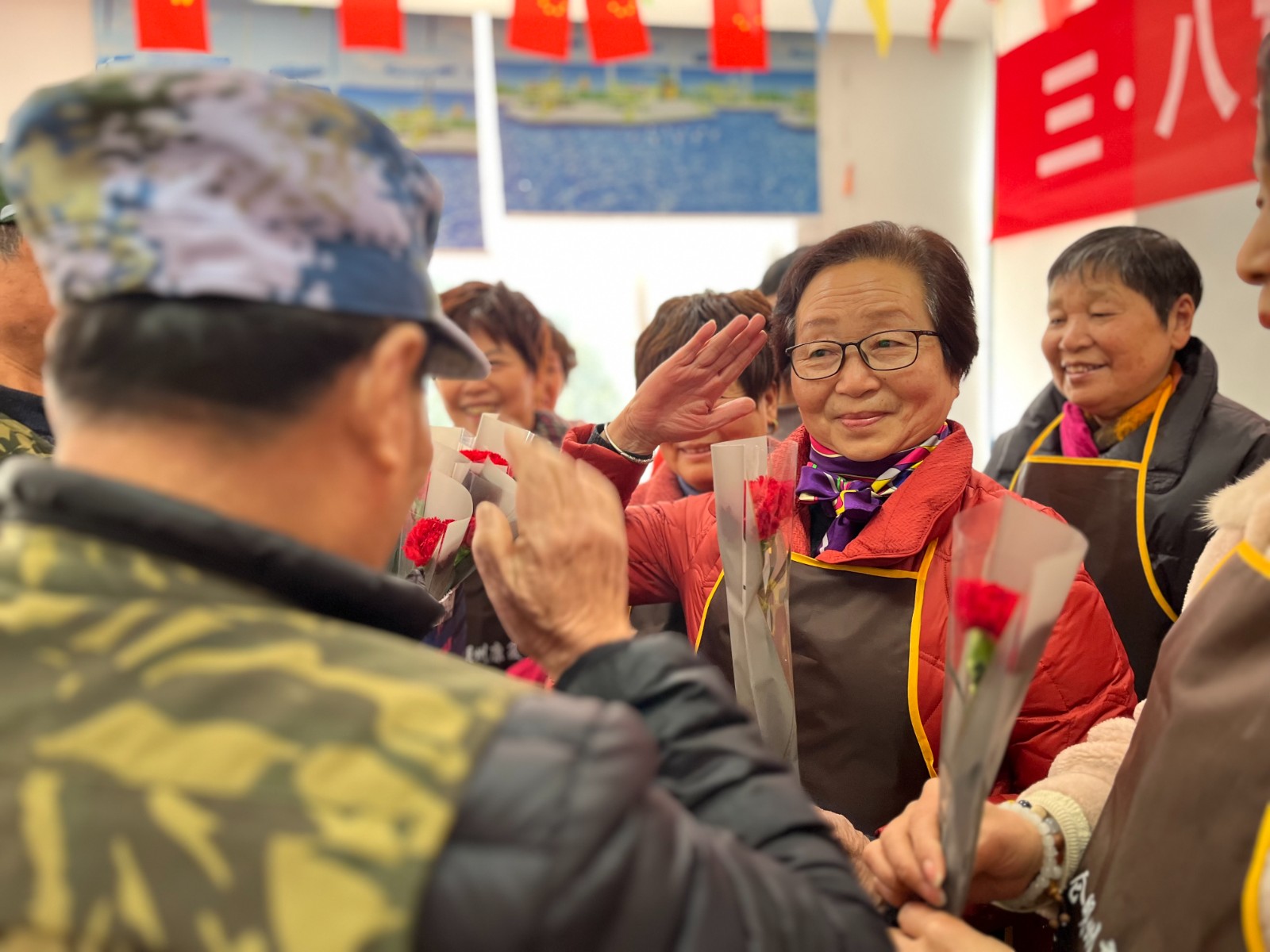 一大早,妇女们早早地来到活动中心,开始了紧张而有序的准备工作。她们分工合作,有的负责和面,有的负责调馅,有的则负责擀皮。大家一边忙碌着,一边交流着包饺子的技巧和经验,现场气氛温馨而融洽。期间,老兵代表为女士们献上美丽的花朵。老年协会会长顾国安笑着说:“巾帼不让须眉,老兵退役不褪志,大家都是好样的!”