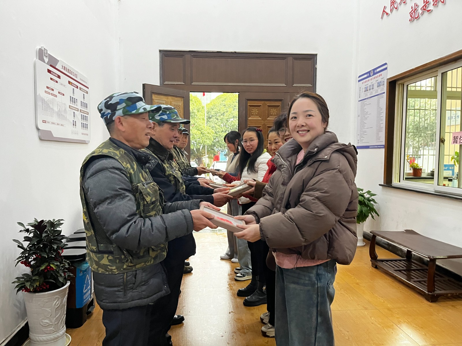 活动尾声,妇女们将手工拓印的成品逐一送到老兵们的手中。老兵们看到这些充满心意的礼物时,脸上露出了幸福的笑容。他们表示,这些手工艺品不仅美观实用,更是对他们的一种鼓励和慰藉,让他们感受到了社区的温暖。