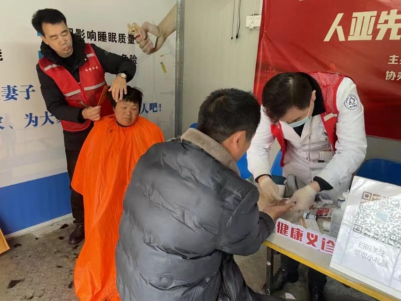在人亚学校建设工地,理发师们认真对待每一位工友,仔细询问工友对发型的要求,为每位工友“私人订制”。工友们一边讲自己家乡民间习俗、话北仑发展,还和理发师讲述着工地生活的点滴,场面温馨而和谐。“平时忙于工作,很难有时间顾及自己的形象,今天能在这里享受如此专业的理发服务,真好!”理发师们娴熟精湛的技术和热情周到的服务得到了工友的一致称赞。工地现场还设有 “金融服务”“反诈宣传” “健康义诊”等多项服务点位。工友们既学习了防范诈骗、金融理财等相关知识,也体验了健康诊疗,更好地了解了自己的健康状况。